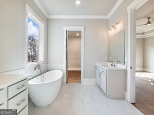 Bookcases, Double Vanity, High Ceilings, Master On Main Level, Split Bedroom Plan, Tray Ceiling(s), Walk-In Closet(s)